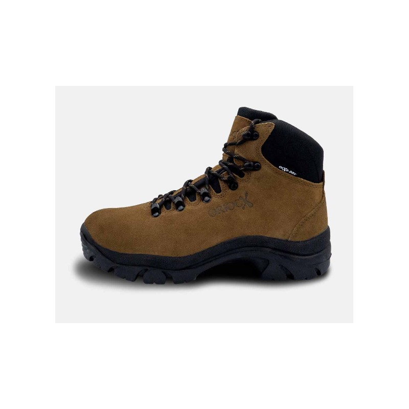 Bota de montaña diseñada para actividades al aire libre. Incorpora membrana OCX2-DRY, impermeable y transpirable, que mantiene el pie seco incluso en condiciones húmedas. Fabricada en piel serraje hidrofugada, repele eficazmente el agua y resulta ideal para su uso en ambientes húmedos. Cuenta con suela Oriocx de caucho, que ofrece gran resistencia, amortiguación y excelente agarre.
